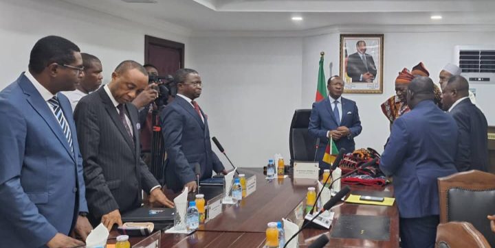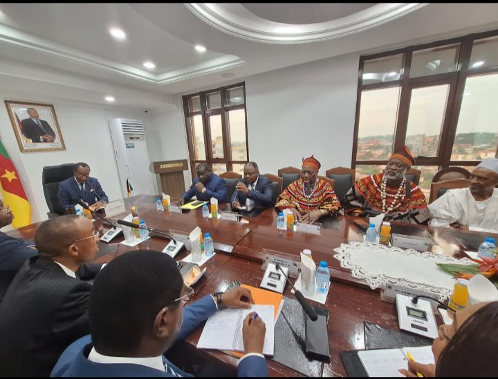 Le Ministre des Travaux Publics a reçu, ce 22 avril 2026, une délégation de dignitaires du département de la Menchum, conduite par l’honorable Richard Wallang, venue exprimer la reconnaissance des populations au Chef de l’État pour le projet de construction de la route Bamenda–Bafut–Wum, en prolongement de la section Ndu–Nkambe–Misaje.