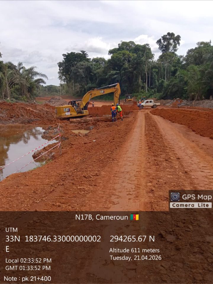 Les travaux de construction de la route Olounou-Oveng gagnent en intensité sur le terrain. Au 27 avril 2026, on note que les interventions de l’entreprise s’étendent désormais au-delà du point kilométrique 35, les terrassements s’intensifient, de même que la préfabrication des dalots, la multiplication des équipes et le renforcement en équipements entre autres.