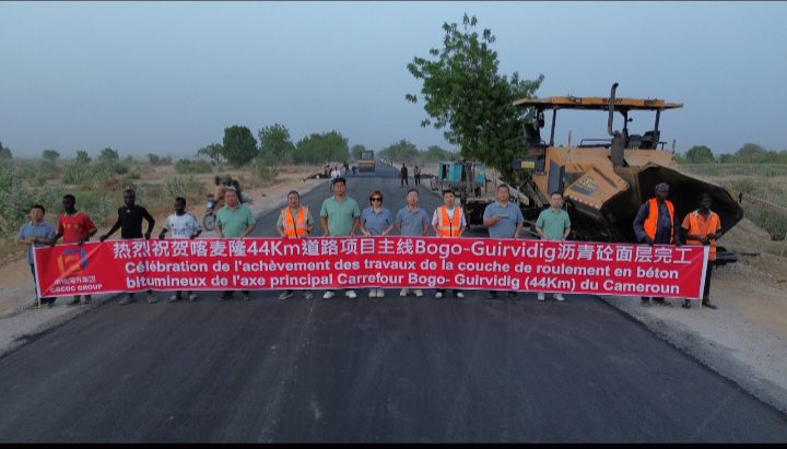 De Bogo à Guirvidig dans la région de l’Extrême-nord, on roule sur du béton. L’asphalte de couloir quasi noire recouvre les 32,86 km de cet itinéraire principal du projet, concrétisant ainsi, les promesses de connectivité, de développement et d’essor économique de cette zone. Les équipes de l’entreprise CGCOG, en charge des travaux étaient particulièrement satisfaites du travail réalisé ce 11 avril 2026 et surtout focalisées vers l’achèvement total du projet.