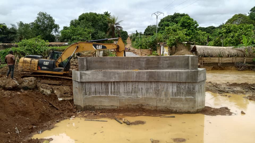 dernier, un nouvel accès a été etabli pour assurer le franchement de la rivière par les élèves et les usagers. S’agissant des travaux de construction du pont définitif de 26 mètres linéaires et de ses voies