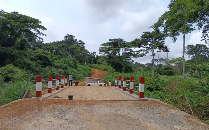 La réalisation de cet ouvrage de franchissement a été financée par le Budget d’Investissement Public du ministère des travaux publics ligne Fonds Routier pour un montant TTC de 59 500 000 Fcfa exercice 2023, soit 57 331 748 Fcfa pour les travaux et 2 168 216 Fcfa pour le contrôle technique et géotechnique pour une durée d’exécution de trois mois à compter de la date de notification de l’ordre de service de démarrage. L’équipe projet a sollicité du Maître d’ouvrage, la pré réception technique des travaux, pour permettreaux usagers d’exploiter le pont.