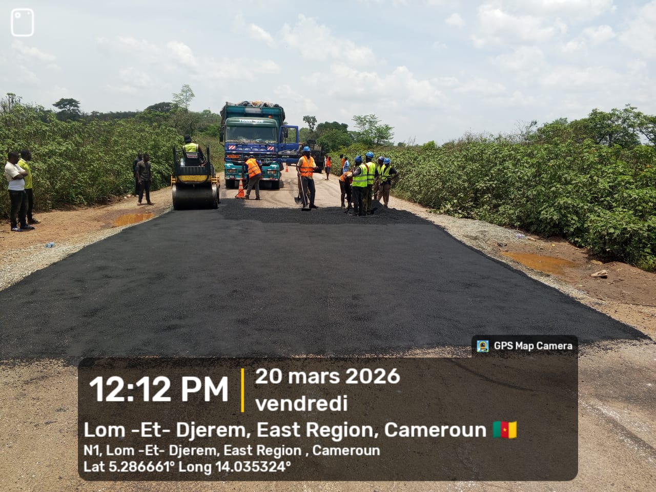 Après plusieurs semaines consacrées aux travaux préliminaires et à l’assainissement, l’entretien confortatif de la Nationale N°1, section Bertoua–Ndokayo–Garoua Boulaï, se poursuit le 19 mars 2026 avec le traitement des nids de poule au béton bitumineux.