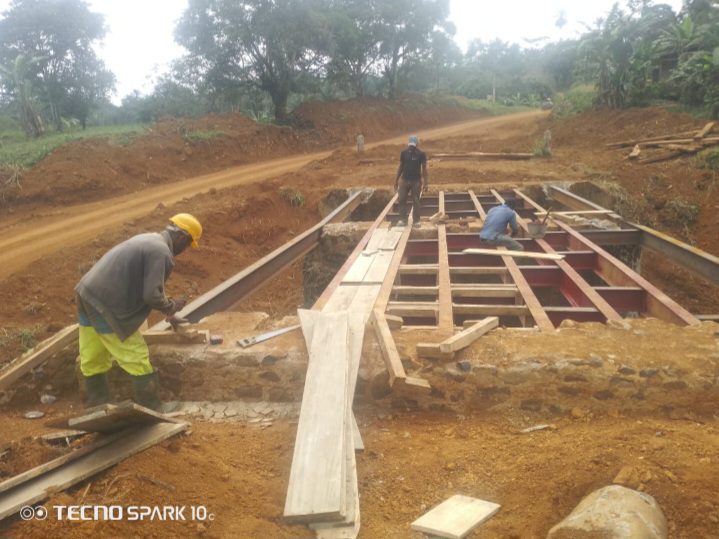 La construction des ouvrages se poursuivent simultanément sur plusieurs sections. Au pk 31+450, l’entreprise a engagé le remplacement du tablier du pont sur la rivière Nyamangolo, après la dépose de l’ancien platelage, qu’aux pks 29+700, les opérations de coffrage et de calage des parois de dalot sont en cours. Ces travaux contribuent à faciliter l’écoulement des eaux et ainsi améliorer la résistance de la route face aux intempéries.