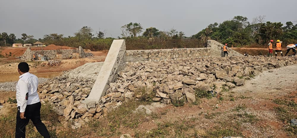 Le constat a été fait le 31 janvier 2024 au cours de la visite organisée sur certains sites, avec pour but d’évaluer le niveau d’avancement des travaux. Les équipes de l’entreprise LST SARL en charge des travaux, sont à pieds d’œuvre. D’après le chef chantier Benga François Xavier, qui organise les différents ateliers, les éléments de ferraillage des chevêtres pour le coffrage des colonnes sont en phase d’achèvement, de même que les enrochements des blocs techniques qui sont réalisés à 90%, ceci avant d’entamer les dalles de transition, cette intense activité vise à capitaliser la longue saison sèche en cours propice pour l’avancement des travaux.