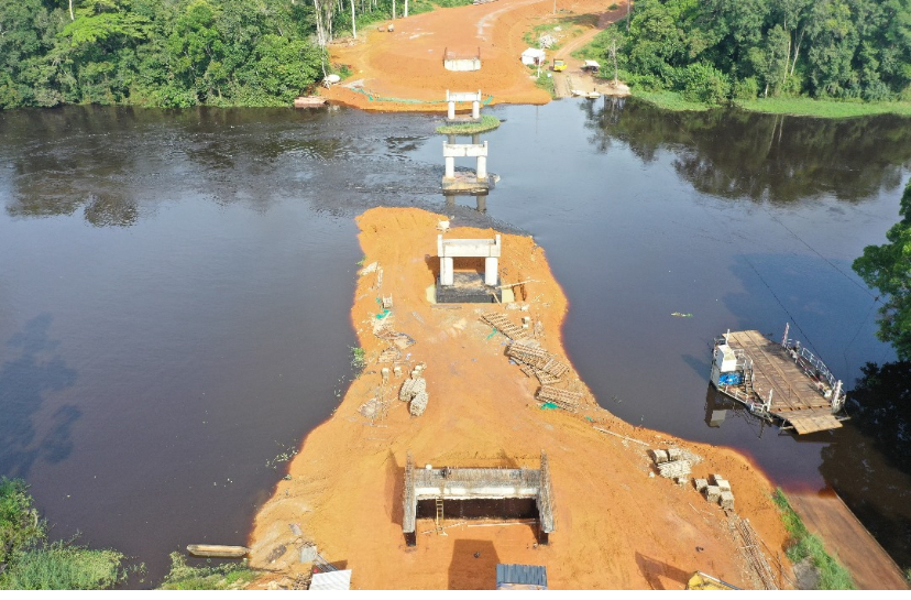Malgré des conditions climatiques peu favorables, les équipes de la China First Highway Engineering Company (CFHEC) maintiennent une dynamique de travail soutenue sur le site de construction du pont sur le fleuve Nyong à Malombo. Les activités en cours concernent le coulage du béton, les coffrages et la réalisation des armatures du tablier.
