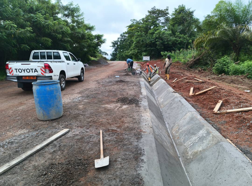 En attendant la formulation du béton, préalable technique aux travaux de chaussée, UNION ENTERPRISE concentre ses efforts sur les travaux d’assainissement préliminaires, notamment l’approvisionnement en matériaux pour la réalisation des fossés. À cet effet, 30 tonnes de ciment SIMPOR 32.5R et 90 tonnes de gravier 15/25 ont déjà été mobilisées sur le site.
