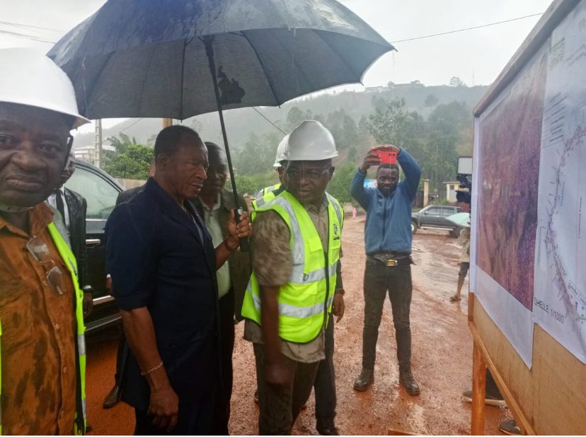 C’est sous une pluie battante que le Ministre des Travaux Publics est arrivé sur le site des travaux de construction de la traversée de la ville de Bamenda. Dame pluie n’a pas empêché le Maître d’ouvrage parcourir l’itinéraire en travaux et d’évaluer la qualité des prestations exécutées jusqu’ici dans un espace influencé par la libération des emprises. À date, le projet affiche un taux d’avancement estimé à un peu plus de 12 %, avec des progrès visibles sur le terrain.